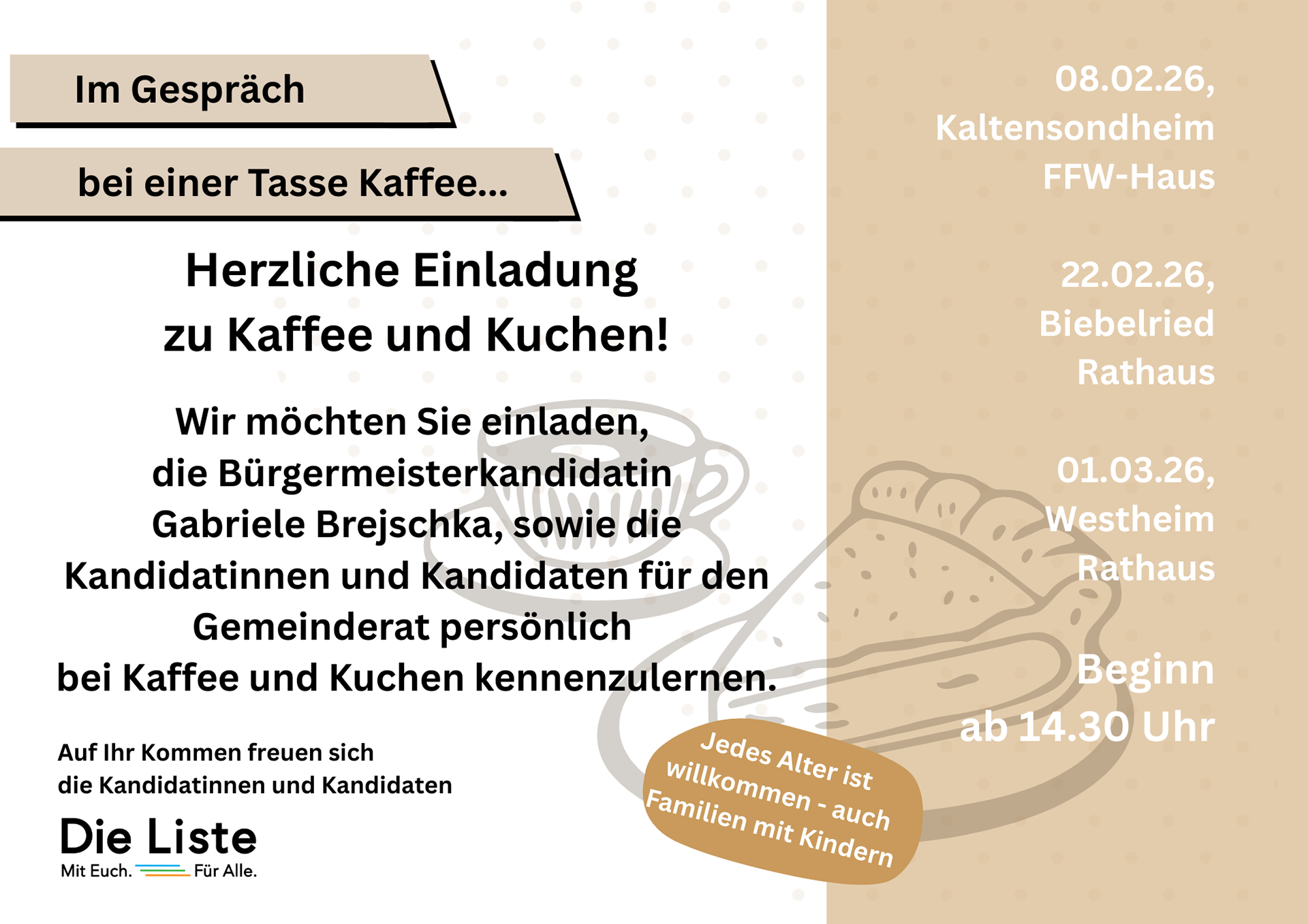Aktuelle Termine an denen Sie mit uns sprechen können.